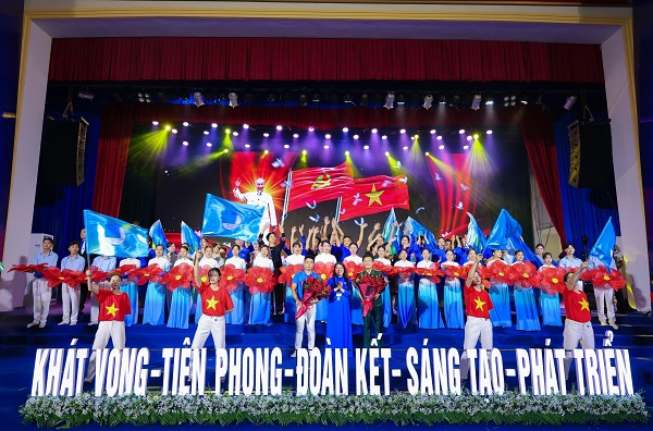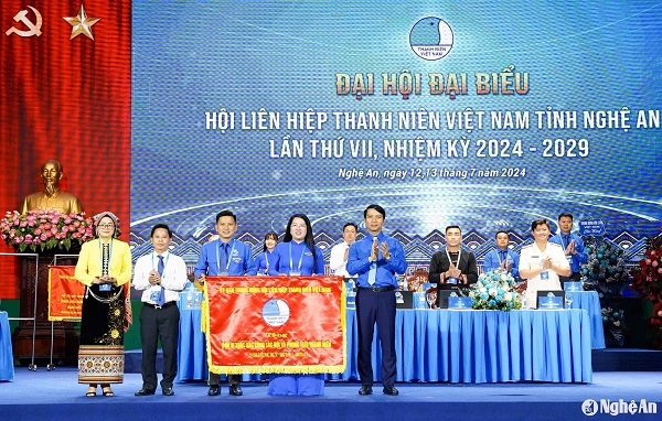 Ủy ban Trung ương Hội LHTN Việt Nam trao tặng cờ cho đơn vị xuất sắc trong công tác Hội và phong trào thanh niên nhiệm kỳ 2019-2024. Ảnh: Thanh Quỳnh