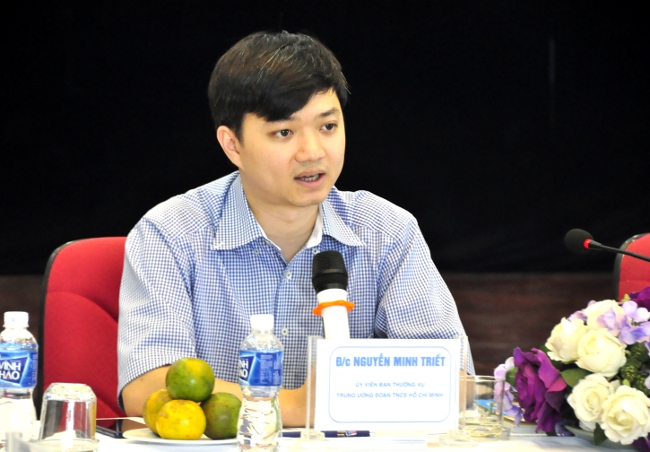 Đồng chí Nguyễn Minh Triết - Ủy viên Ban thường vụ, Trưởng Ban Thanh niên trường học Trung ương Đoàn, Phó Chủ tịch thường trực Trung ương Hội Sinh viên Việt Nam phát biểu tại Tọa đàm
