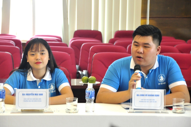 Đinh Vũ Khánh Định (bên phải) - Chủ tịch Hội sinh viên trường Đại học Luật Hà Nội