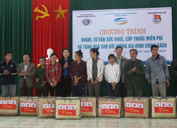 Theo kế hoạch, Tỉnh đoàn Phú Thọ cùng các đơn vị phối hợp, đồng hành sẽ tiếp tục tổ chức chương trình tặng quà, khám bệnh và phát thuốc miễn phí cho trên 500 đối tượng gia đình chính sách trên địa bàn 02 xã Phương Xá, huyện Cẩm Khê và xã Trung Sơn, huyện Yên Lập vào hai ngày 08/12 và 15/12/2018 tới đây.