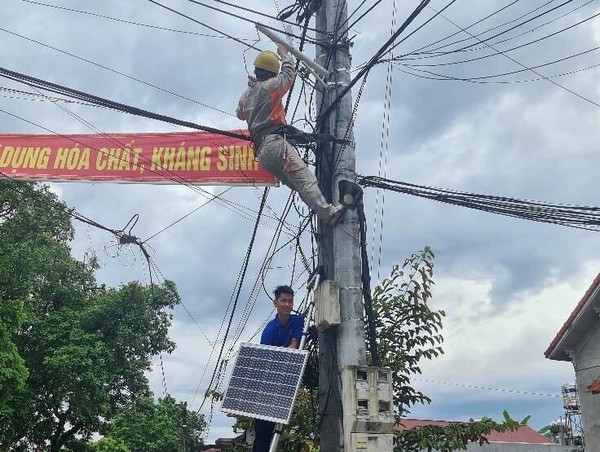 Tham gia lắp đèn năng lượng mặt trời hoàn thành công trình “Thắp sáng đường quê”