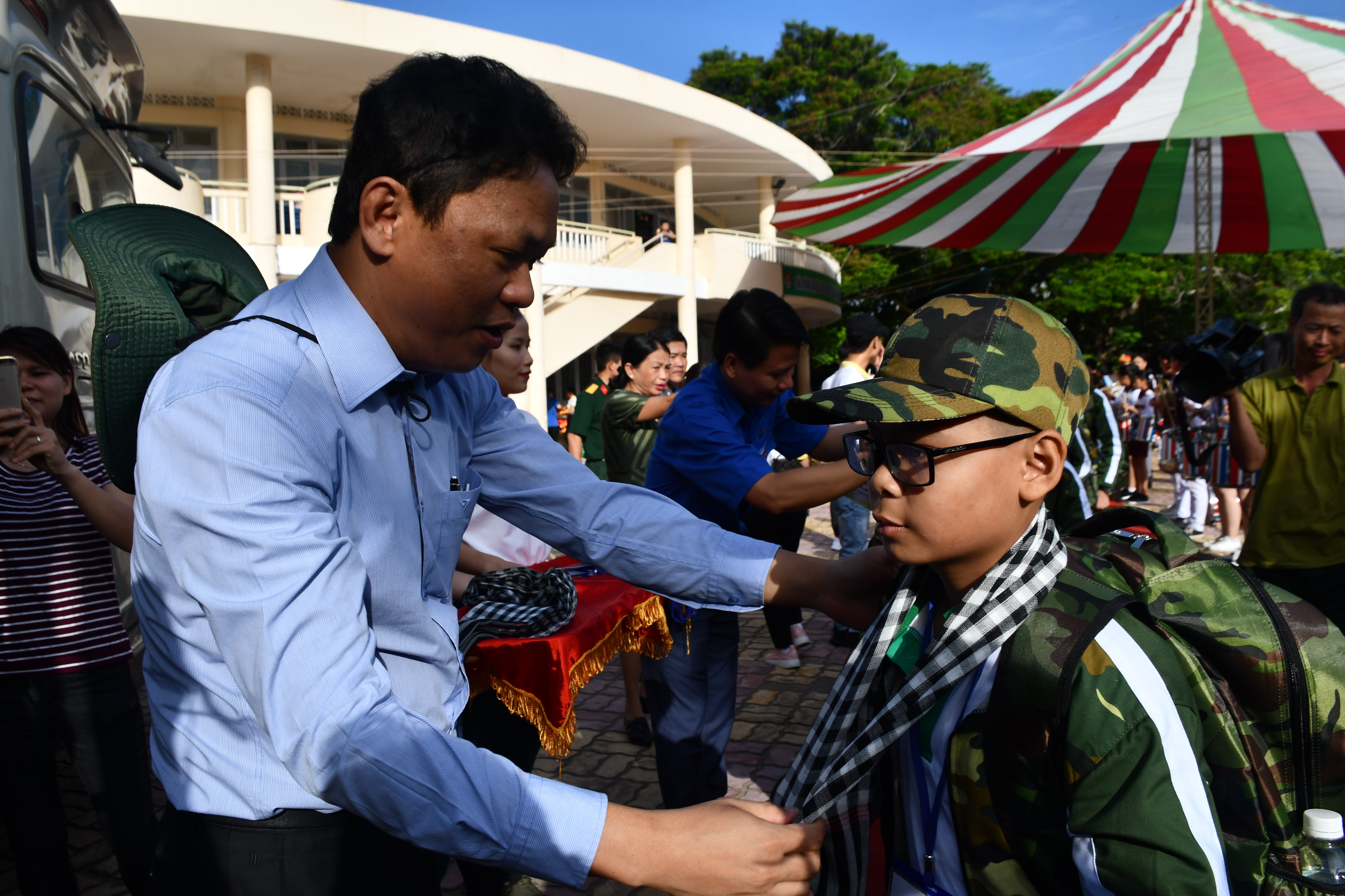 Ban Tổ chức trao thẻ và khăn cho các học viên