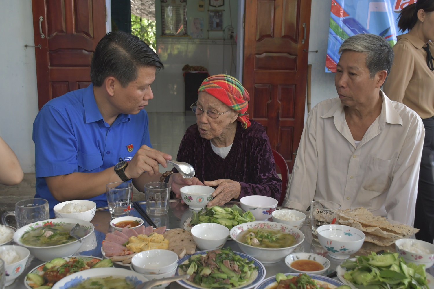 Bí thư Tỉnh Đoàn, Chủ tịch Hội LHTN Việt Nam tỉnh Lương Minh Tùng thăm hỏi và cùng dùng bữa cơm thân mật với Mẹ Việt Nam Anh hùng Nguyễn Thị Xạ.