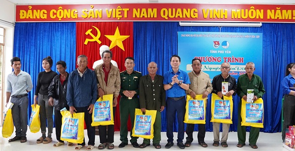 Thường trực Tỉnh Đoàn cùng các đơn vị trao tặng quà cho già làng, người có uy tín, các hộ gia đình chính sách xã Ea Bá.