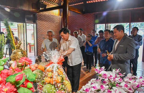 Các đồng chí lãnh đạo dâng hương với lòng thành kính biết ơn, kính cẩn nghiêng mình tưởng nhớ công lao trời biển của Bác Hồ.