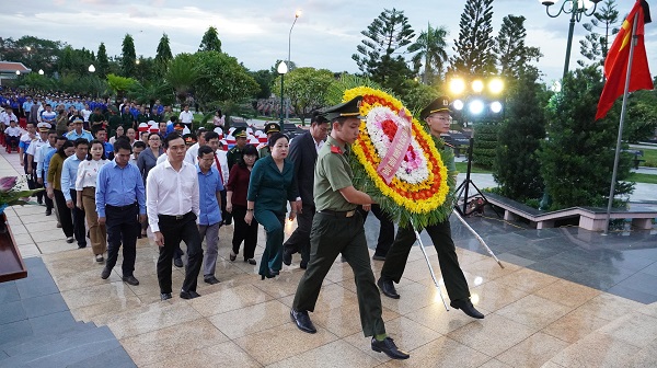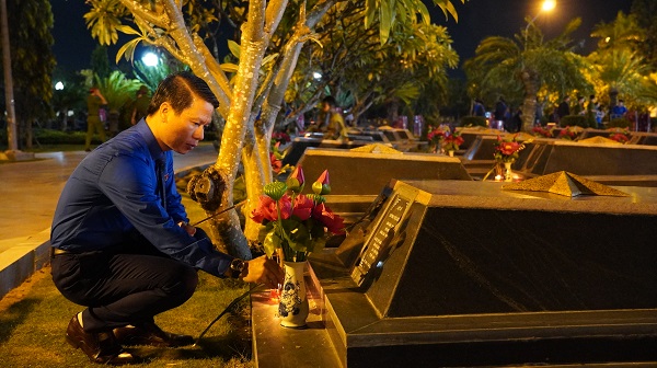 Tại chương trình, các đại biểu đã thành kính dâng hoa, dâng hương lên Đài tưởng niệm trung tâm, thắp sáng nến, dâng hương, hoa trên gần 6.200 phần mộ liệt sĩ tại nghĩa trang.
