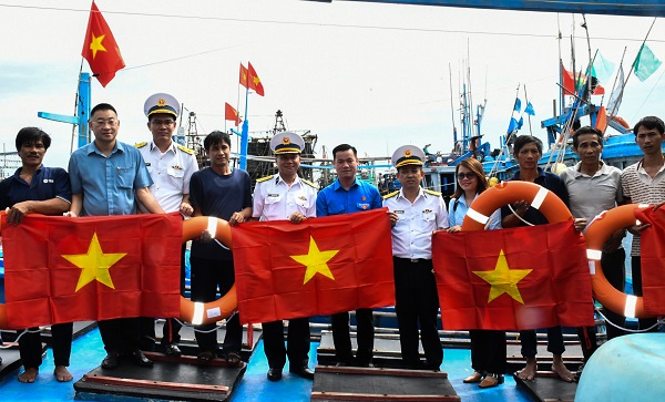 BTC trao tặng phao, cờ Tổ quốc cho ngư dân.