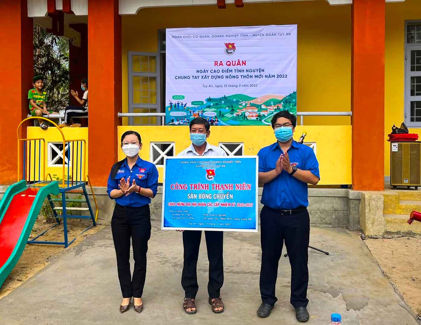 Huyện Đoàn Tuy An phối hợp Đoàn Khối Cơ quan, Doanh nghiệp tỉnh khánh thành công trình “Sân bóng chuyền” trị giá 30 triệu đồng tại thôn Quảng Đức, xã An Thạch, huyện Tuy An