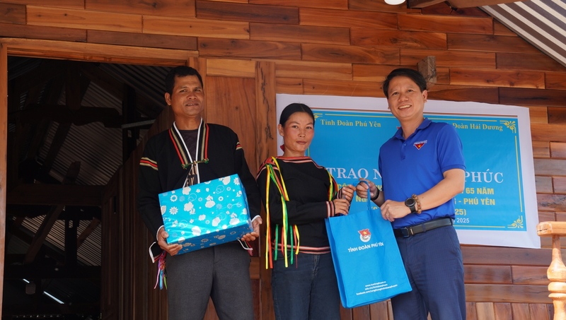 Cũng tại lễ bàn giao, đồng chí Lương Minh Tùng, Bí thư Tỉnh đoàn, Chủ tịch Hội LHTN Việt Nam tỉnh Phú Yên chúc mừng và tặng quà cho hộ gia đình thanh niên Ksor Y Tem khi về nhà mới. Đồng chí Lương Minh Tùng cho biết, xây dựng “Nhà hạnh phúc” là một trong những công trình thanh niên tiêu biểu thực hiện phong trào thi đua “Chung tay xóa nhà tạm, nhà dột nát trên phạm vi cả nước trong năm 2025”của Thủ tướng Chính phủ, nhằm giúp cho người dân có hoàn cảnh khó khăn có điều kiện thoát nghèo, ổn định cuộc sống. Cùng với các cấp, các ngành, tuổi trẻ hai tỉnh Phú Yên - Hải Dương đã và đang phát huy vai trò xung kích, tình nguyện, góp sức thực hiện mục tiêu xóa nhà tạm, nhà dột nát trên địa bàn tỉnh.