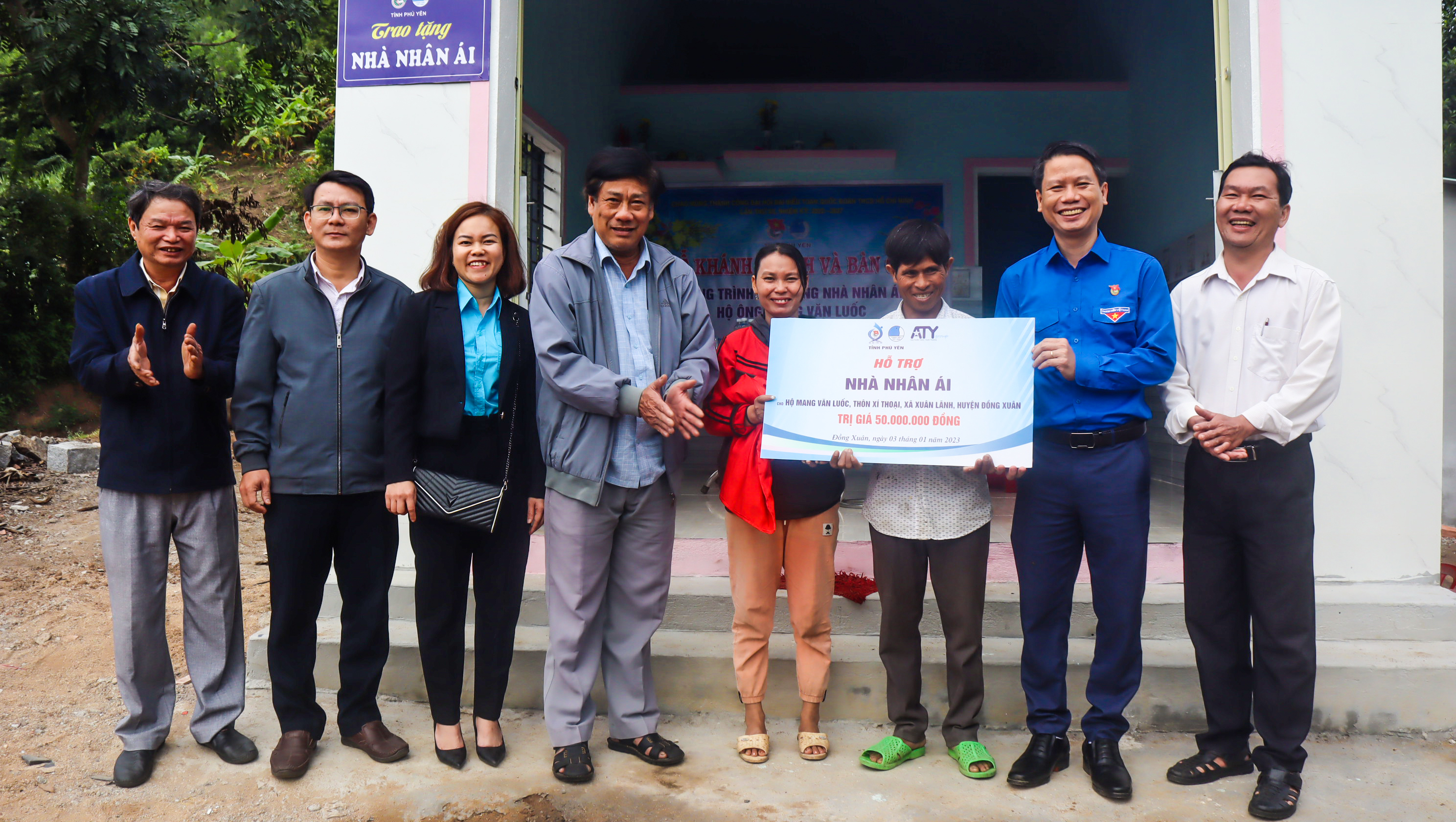 Thường trực Tỉnh Đoàn cùng chính quyền địa phương huyện Đồng Xuân khánh thành và bàn giao Nhà nhân ái cho gia đình anh Mang Văn Luốc.