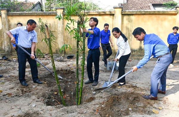 Lãnh đạo tỉnh và Thường trực Tỉnh Đoàn trồng cây xanh tại khuôn viên Trường THCS Trần Hưng Đạo.