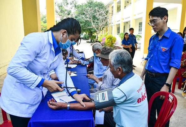 Đội ngũ y, bác sĩ trẻ khám bệnh cho người dân.