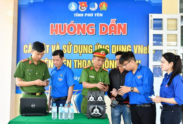 Đoàn viên thanh niên triển khai tuyên truyền, hướng dẫn bà con nhân dân cài đặt và sử dụng ứng dụng Định danh điện tử (VNeID).