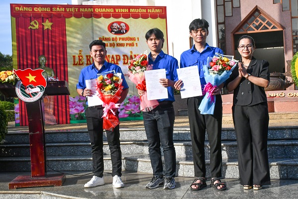 Chi bộ khu phố 1, Đảng bộ Phường 1, thành phố Tuy Hòa tổ chức lễ kết nạp đảng viên cho 03 quần chúng.