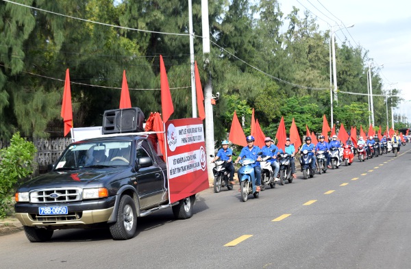 Đoàn viên, thanh niên tham gia diễu hành hưởng ứng Tháng hành động quốc gia phòng, chống HIV/AIDS.