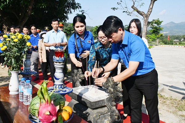 Các đại biểu, đoàn viên dâng hương tại Di tích lịch sử Quốc gia Mộ và địa điểm Đền thờ Đào Trí.