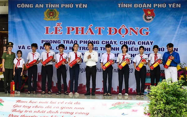 Dịp này, nhằm hưởng ứng tích cực phong trào “Nhà tôi có bình chữa cháy", Công an tỉnh và Tỉnh Đoàn đã tặng 60 bình chữa cháy cho các em học sinh có hoàn cảnh khó khăn; trao 20 suất quà cho học sinh có hoàn cảnh khó khăn của Trường THCS Nguyễn Văn Trỗi; tổ chức cho các em học sinh, giáo viên của trường trải nghiệm thực tế “Chúng em làm lính cứu hỏa” như: hướng dẫn những kiến thức cơ bản về phòng cháy, chữa cháy và các kỹ năng thoát hiểm, thoát nạn khi có hỏa hoạn xảy ra; cách sử dụng các loại bình chữa cháy và thực hành sử dụng bình chữa cháy để dập tắt đám lửa; xem diễn tập với tình huống giả định cháy tại trường, qua đó lực lượng phòng cháy, chữa cháy thực hiện các biện pháp chữa cháy, cứu hộ, cứu nạn ban đầu, hướng dẫn học sinh di chuyển thoát nạn…
