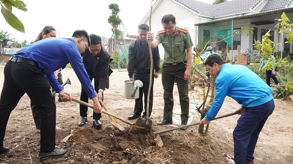 Ban tổ chức cùng đoàn viên, thanh niên trồng cây xanh tại trụ sở thôn, các địa điểm công cộng trên địa bàn xã Hòa Xuân Đông.