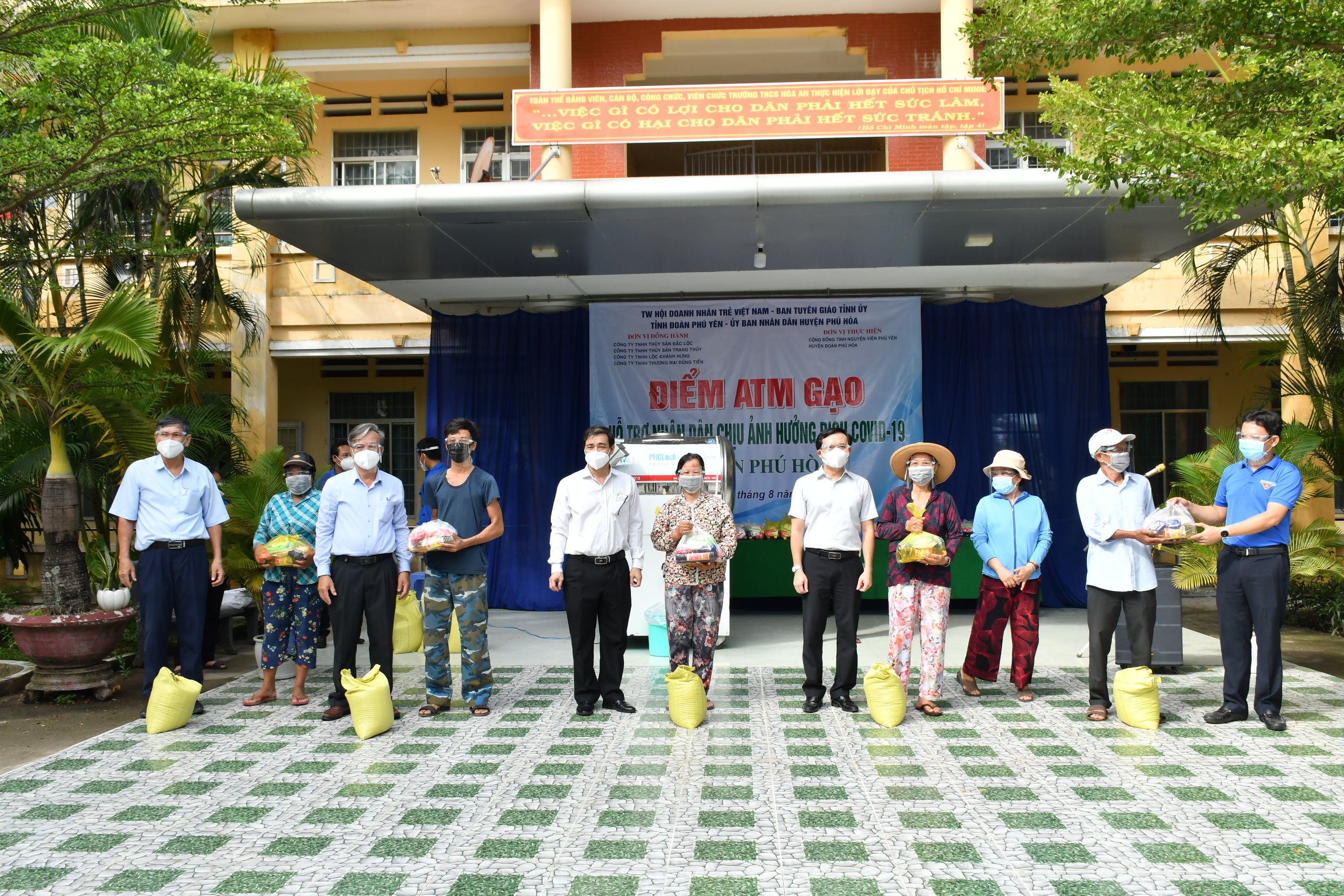 Nguồn lực trên do Ban Tuyên giáo Tỉnh ủy, Tỉnh Đoàn vận động từ các doanh nghiệp: Công ty TNHH Lộc Khánh Hưng, Công ty TNHH Thủy sản Đắc Lộc, Công ty TNHH TM Dũng Tiến, Công Ty TNHH Thủy sản Trang Thủy và các tổ chức, cá nhân là 8,5 tấn gạo; 2,5 tấn gạo do Ủy ban MTTQ Việt Nam huyện và Huyện Đoàn Phú Hòa vận động.