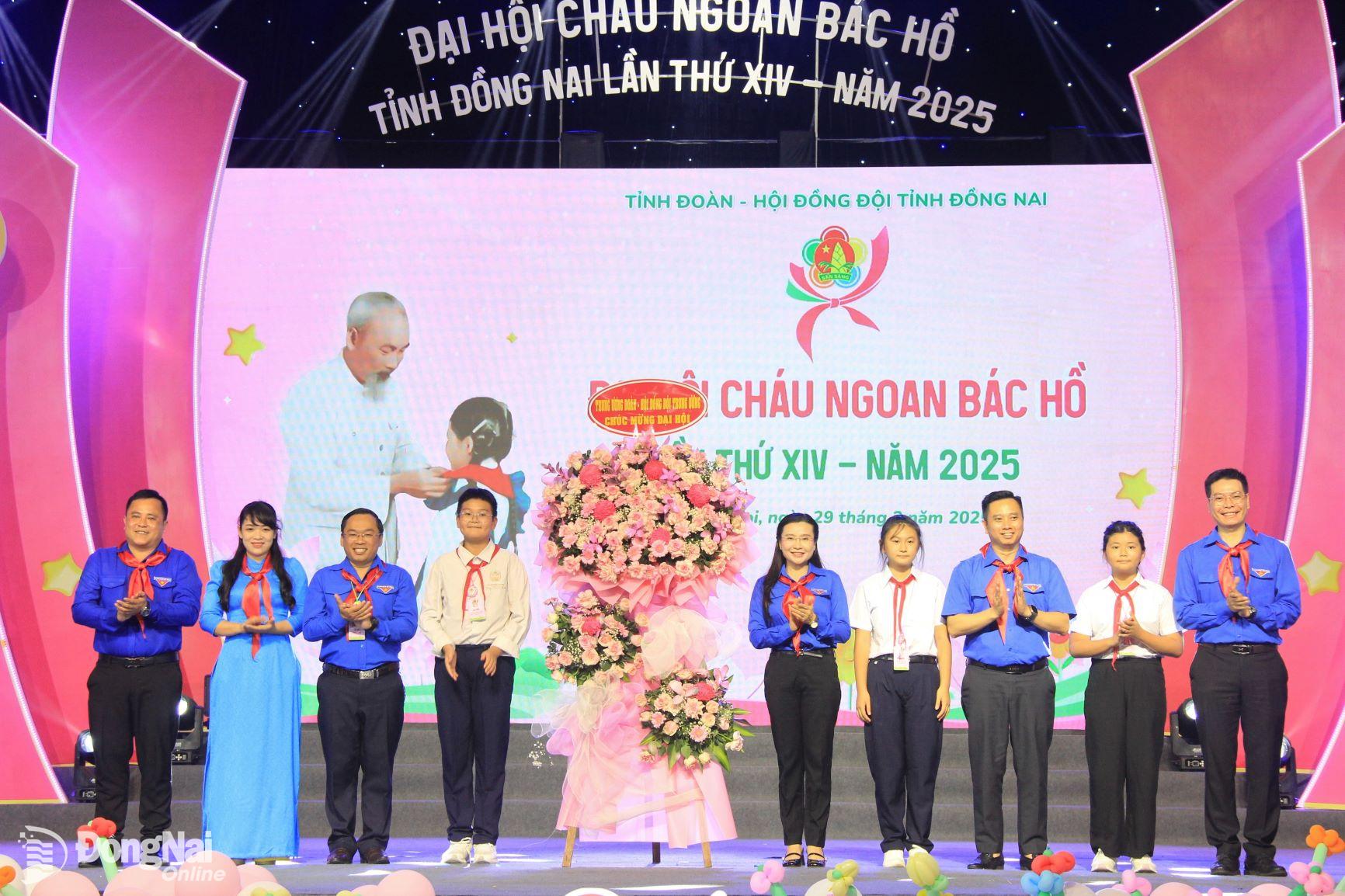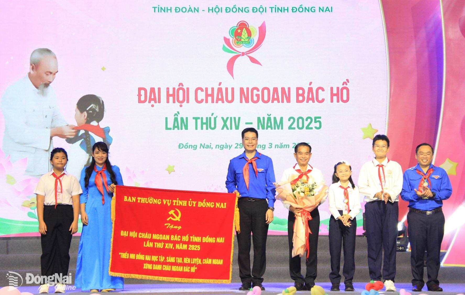 Thay mặt Ban Thường vụ Tỉnh ủy, đồng chí Thái Bảo đã trao bức trướng của Ban Thường vụ Tỉnh ủy tặng Đại hội Cháu ngoan Bác Hồ tỉnh Đồng Nai lần thứ XIV năm 2025 với nội dung: “Thiếu nhi Đồng Nai học tập, sáng tạo, rèn luyện, chăm ngoan, xứng danh cháu ngoan Bác Hồ”.