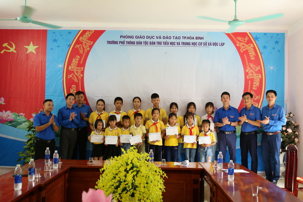Trong khuôn khổ hội nghị, Các đơn vị trong Cụm đã tham gia hoạt động an sinh xã hội thăm tặng quà trao học bổng cho các em học sinh có hoàn cảnh khó khăn trường Phổ thông dân tộc bán trú và khánh thành công trình thanh niên "Đoạn đường chiếu sáng Năng lượng xanh tại xã Độc Lập"