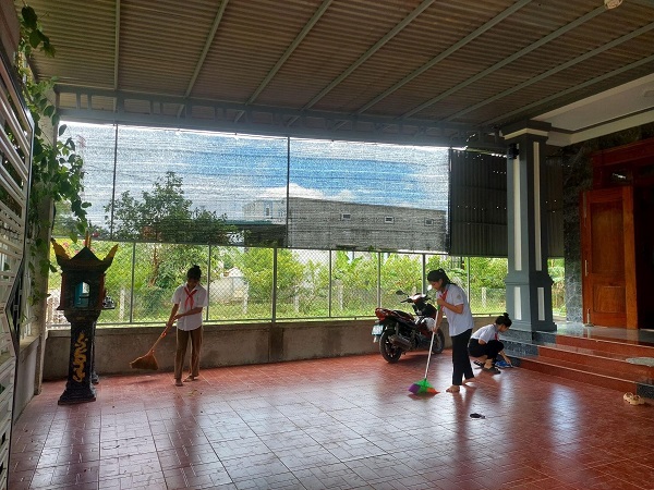 Ngay từ sáng sớm các thành viên trong đoàn đã có mặt tại nhà của Mẹ. Người lau dọn bàn ghế, nhà cửa, người nhặt rau, gọt củ quả, người ướp thịt… Mỗi người một việc để chuẩn bị chế biến bữa cơm ngon, đủ dinh dưỡng và ấm áp cùng Mẹ Việt Nam anh hùng Hoàng Thị Hy.
