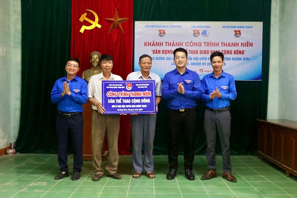 Công trình "Sân thể thao cộng đồng" tại thôn Hướng Phương, xã Quảng Phương và Thôn 4, xã Quảng Kim được bố trí trên diện tích sàn 40m2 với 6 tổ hợp thiết bị tập luyện tổng hợp có nhiều chức năng. Tổng giá trị của 02 công trình là 50 triệu đồng từ nguồn kinh phí do Đoàn Khối Doanh nghiệp TW, Tỉnh Đoàn Quảng Bình hỗ trợ và từ nguồn đối ứng của Huyện Đoàn Quảng Trạch.