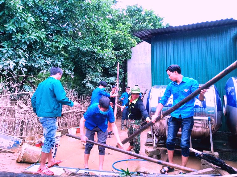 Hiện nay, lượng mưa đã giảm, ngay khi nước rút, các đội hình tình tình nguyện tại các cơ sở Đoàn đã kịp thời triển khai công tác vệ sinh môi trường, khắc phục hậu quả lũ lụt với việc ưu tiên hỗ trợ các trường học để học sinh sớm trở lại trường. Tại đây, các bạn ĐVTN đã sắp xếp lại bàn ghế, lau chùi, xịt rửa bùn đất do mưa lũ, quét dọn lại sân trường để trả lại khuôn viên nhà trường sạch sẽ cho các em học sinh. Đồng thời, các đội hình tình nguyện cũng ưu tiên hỗ trợ các gia đình chính sách, gia đình neo đơn... giúp dọn dẹp, lau chùi, vệ sinh lại nhà cửa bị ảnh hưởng do mưa lũ.