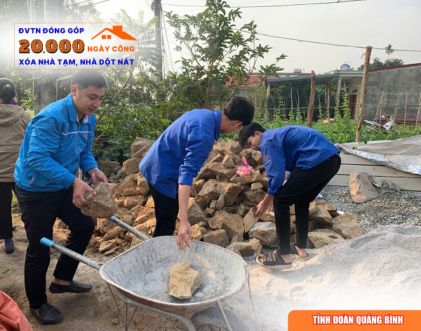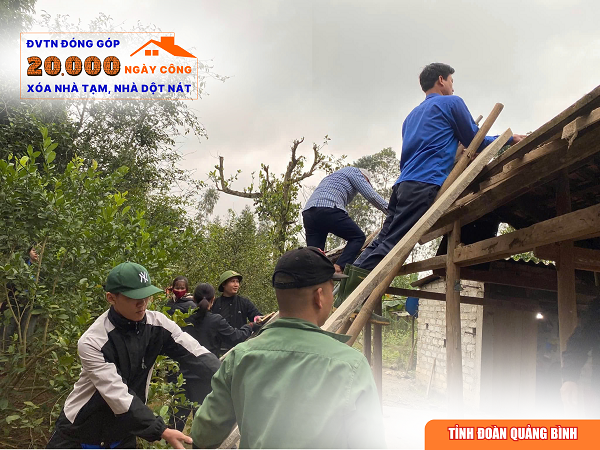 ĐTN: Thực hiện Nghị quyết của Ban Chấp hành Đảng bộ tỉnh Quảng Bình về xóa nhà tạm, nhà dột nát cho hộ nghèo, hộ cận nghèo trên địa bàn tỉnh, BTV Tỉnh đoàn đã ban hành kế hoạch triển khai Phong trào thi đua “Đoàn viên thanh niên đóng góp 20.000 ngày công xoá nhà tạm, nhà dột nát” trên địa bàn tỉnh Quảng Bình.