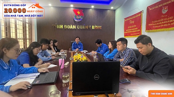 Góp sức trẻ của thanh niên Quảng Bình trong chương trình “Xoá nhà tạm, nhà dột nát”, Ban Thường vụ Tỉnh Đoàn đã ban hành Kế hoạch số 171A-KH/TĐTN-PTTN ngày 08/01/2025 về triển khai phong trào thi đua “Đoàn viên Thanh niên đóng góp 20.000 ngày công xóa nhà tạm, nhà dột nát” trên địa bàn tỉnh Quảng Bình, sau hơn 01 tháng triển khai, tính đến ngày 17/02/2025, các Đoàn viên thanh niên trong toàn tỉnh đã tham gia đóng góp 1.557 ngày công xây mới 97 ngôi nhà, tu sửa 91 ngôi nhà.