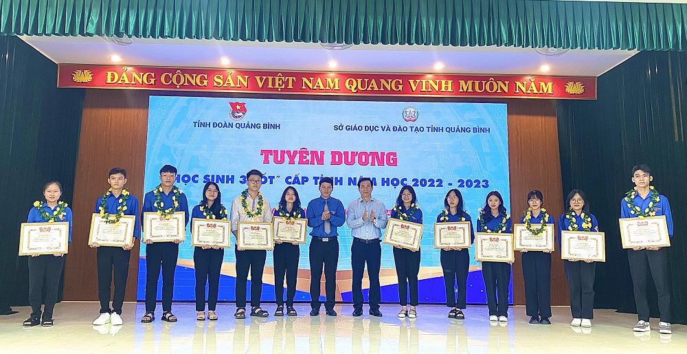 Năm học 2022 - 2023, việc tiếp tục đẩy mạnh triển khai phong trào “Học sinh 3 tốt”, “Học sinh 3 rèn luyện”, “Sinh viên 5 tốt” đã góp phần quan trọng tạo nên một bức tranh sinh động, nhiều màu sắc cho công tác Đoàn và phong trào thanh niên trường học. Tại Hội nghị, Ban Thường vụ Tỉnh Đoàn đã tuyên dương và khen thưởng cho các học sinh, sinh viên có thành tích xuất sắc đạt danh hiệu “Học sinh 3 tốt”, ”Học sinh 3 rèn luyện, “Sinh viên 5 tốt”.