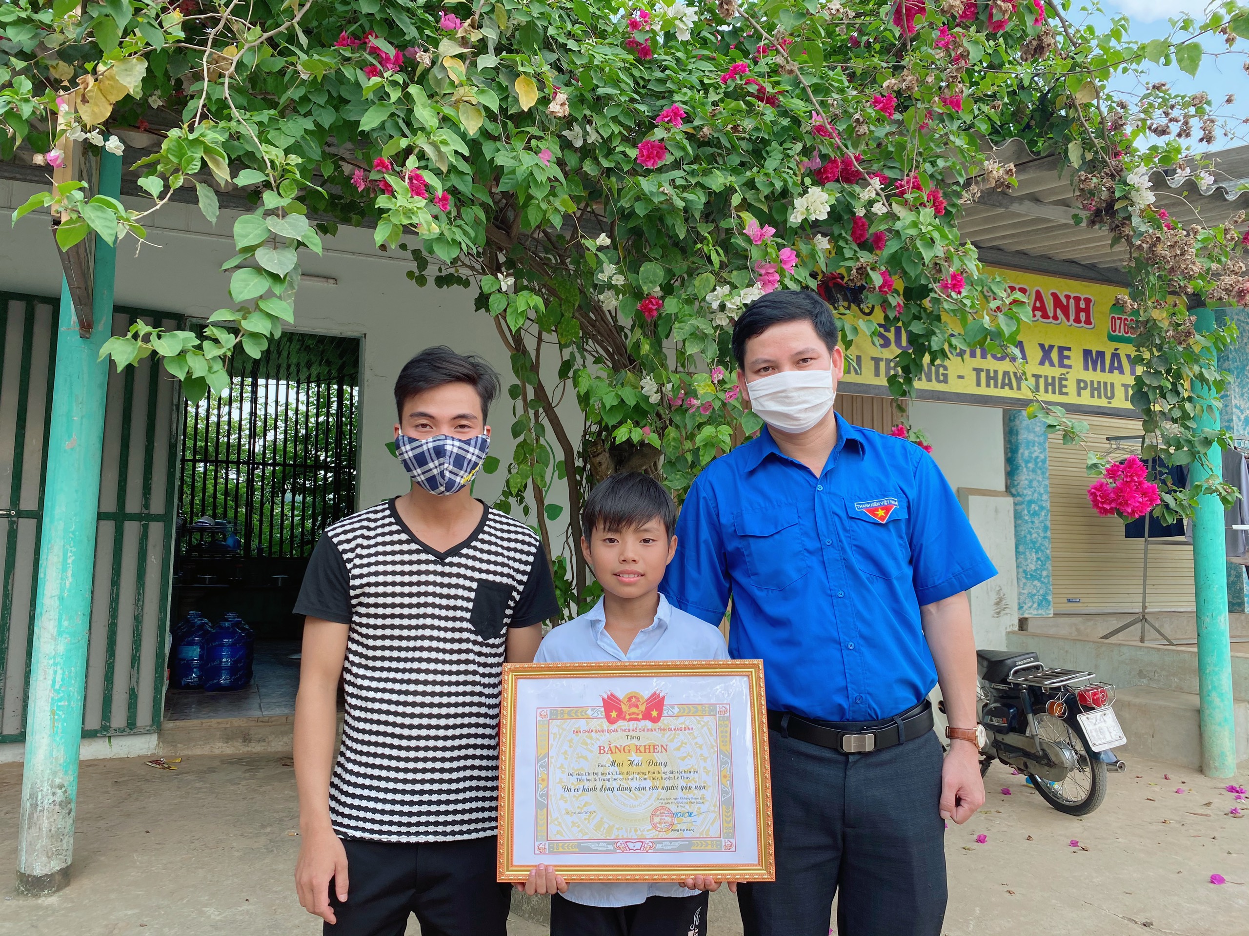 Ban Thường vụ Tỉnh Đoàn trao tặng Bằng khen cho em Mai Hải Đăng sinh năm 2009, học sinh lớp 6 Trường Phổ thông Dân tộc bán trú Tiểu học và Trung học số 1 Kim Thủy, huyện Lệ Thủy, tỉnh Quảng Bình đã dũng cảm lao xuống dòng sông cứu người đang bị đuối nước