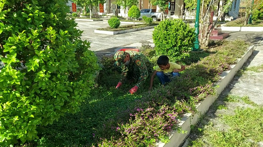 Đoàn viên Thanh niên Chi đoàn Đồn biên phòng Lý Hòa, chăm sóc vườn hoa, cây cảnh tại đơn vị tạo cảnh quan môi trường đơn vị sáng – xanh - sạch – đẹp