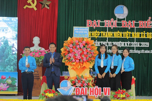 Chủ tịch Hội LHTN Việt Nam tỉnh Quảng Nam Hoàng Văn Thanh tặng hoa chúc mừng Đại hội.