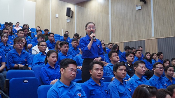 Đoàn viên thanh niên đặt câu hỏi tại diễn đàn