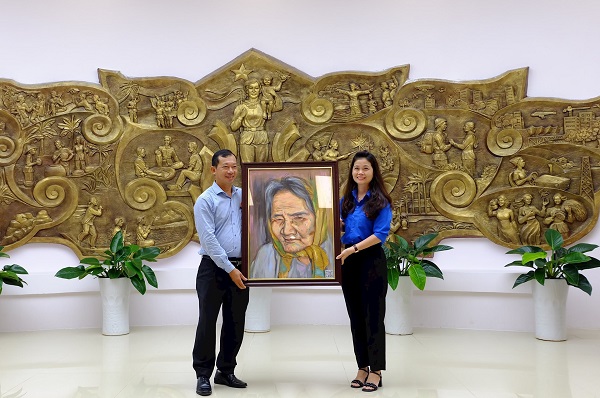 Tỉnh đoàn tặng tranh chân dung Bà mẹ VNAH Nguyễn Thị Thứ cho Ban Quản lý Tượng đài Mẹ VNAH.