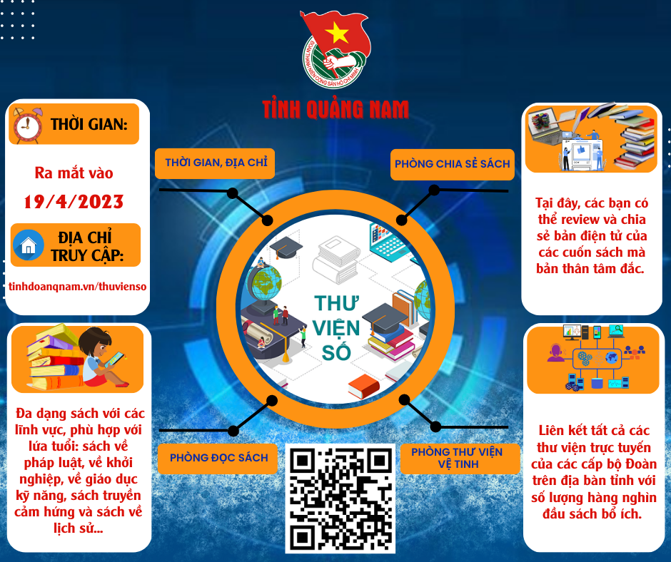 "Thư viện số" là mô hình thư viện thông minh do Tỉnh đoàn Quảng Nam xây dựng, thiết kế. Chỉ cần một chiếc điện thoại thông minh có kết nối mạng internet, dù ở bất cứ đâu, đều có thể lựa chọn những cuốn sách với đa dạng các lĩnh vực, phù hợp với lứa tuổi như: sách về pháp luật, về khởi nghiệp, về giáo dục kỹ năng, sách truyền cảm hứng và sách về lịch sử...