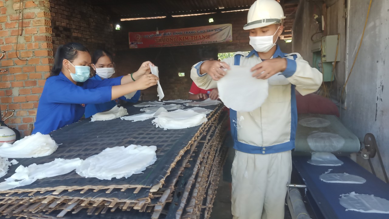 Chị My chia sẻ: “Mì Quảng đã sấy khô rất nhẹ, bảo quản được lâu, lại dễ sử dụng, bên cạnh đó còn mang đậm hương vị, tình cảm của người Quảng Nam dành cho nhân dân Thành phố Hồ Chí Minh gặp khó khăn do dịch bệnh Covid-19 nên Đoàn thị trấn đã vận động quyên góp gạo sau đó làm được 30kg mì Quảng khô gửi vào Nam.” Để có được nhiều sản phẩm gửi tặng bà con gặp khó khăn, gia đình chị My còn cho mượn máy tráng bánh tự động để tối ưu hóa công đoạn, tăng năng suất lên cao nhất.