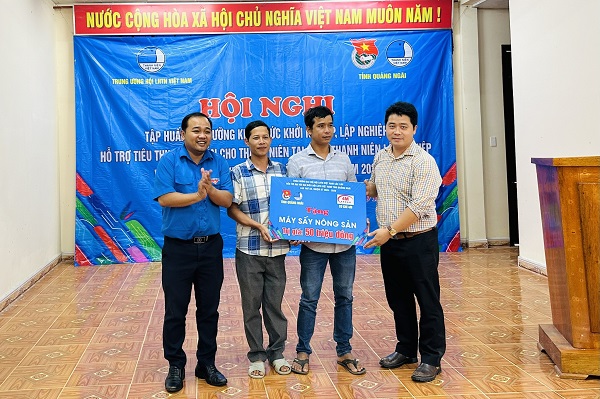 Hội LHTN Việt Nam tỉnh và kỹ sư Nguyễn Nở trao tặng 01 máy sấy nông sản trị giá 50 triệu đồng.