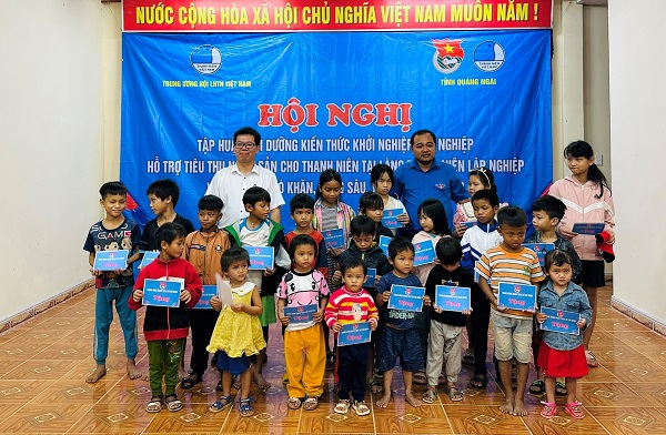 Ban Chỉ huy Lực lượng TNXP Trung ương dành 30 phần quà để tặng các em thiếu nhi tại Làng Thanh niên lập nghiệp Sơn Bua.