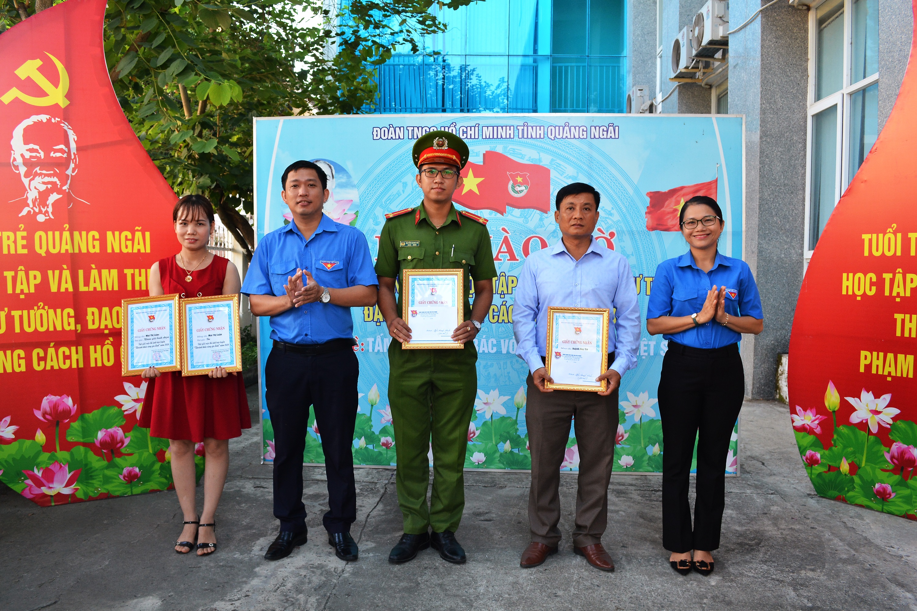 Đồng chí Huỳnh Thị Sương, Phó Bí thư Thường trực; đồng chí Cao Lê Tùng Nghĩa, Phó Bí thư Tỉnh đoàn trao giải Cuộc thi ảnh trực tuyến Khoảnh khắc gia đình năm 2020