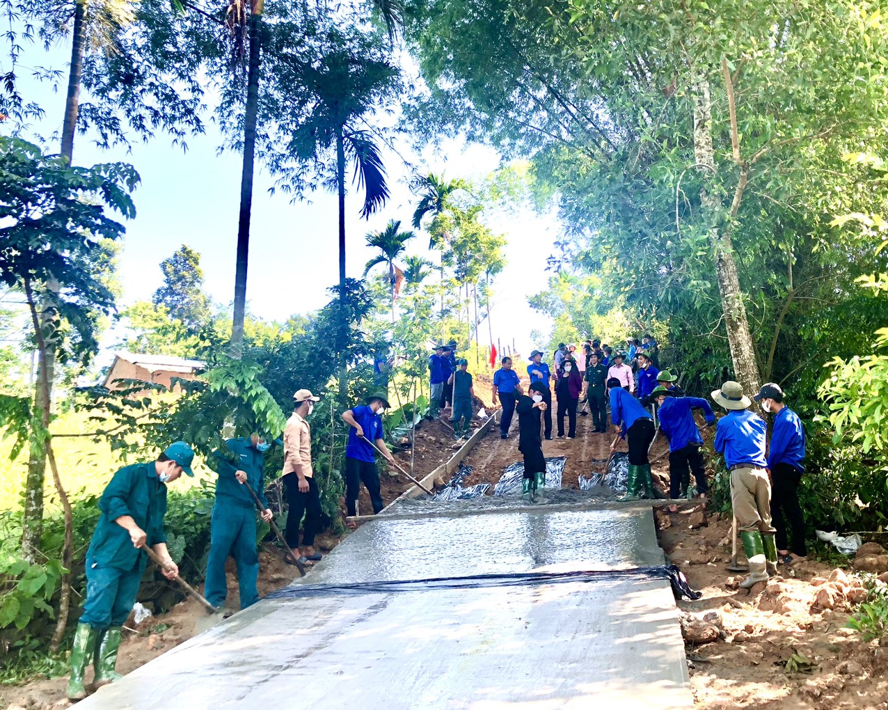 Đội hình Thanh niên tình nguyện ra quân thực hiện công trình Đường bê tông nông thôn