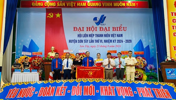 Đại biểu tặng hoa chúc mừng ra mắt Ủy ban Hội LHTN Việt Nam huyện Sơn Tây khóa VI, nhiệm kỳ 2024 – 2029.