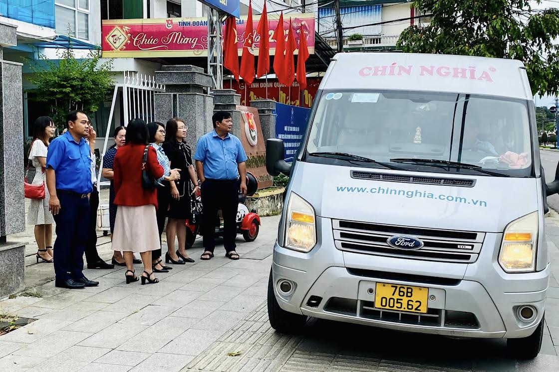 Lãnh đạo Ban Dân vận Tỉnh ủy, Ủy ban MTTQ Việt Nam tỉnh, Hội LHPN tỉnh, Tỉnh đoàn, Hội Chữ thập đỏ tỉnh tiễn bệnh nhi và thân nhân lên đường mổ tim.