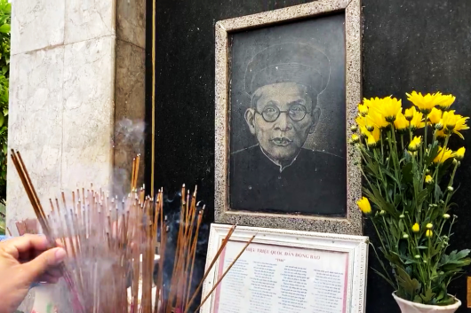 Cán bộ, đoàn viên thanh niên đặt vòng hoa và viếng hương mộ cụ Huỳnh Thúc Kháng