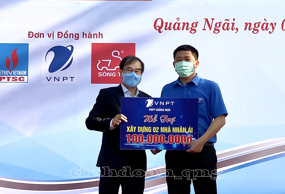 VNPT Quảng Ngãi trao bảng tượng trưng 100 triệu đồng hỗ trợ xây dựng 2 ngôi nhà nhân ái cho Thường trực Tỉnh đoàn