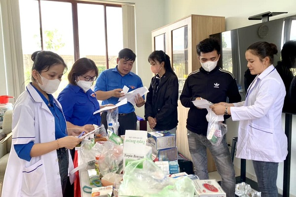 Tình nguyện viên kiểm tra toa thuốc trước khi cấp phát thuốc cho công nhân, người lao động.