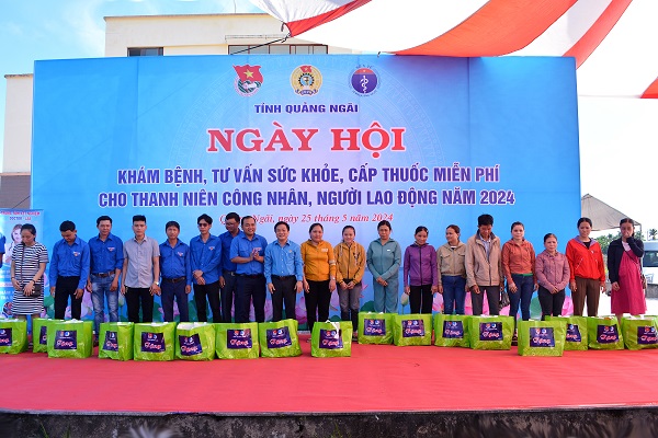 Dịp này, Tỉnh đoàn, Hội LHTN Việt Nam tỉnh trao tặng 20 túi an sinh cho 20 đoàn viên, thanh niên có hoàn cảnh khó khăn; LĐLĐ tỉnh trao tặng 50 suất quà cho TNCNNLĐ, mỗi suất trị giá 1 triệu đồng; Công đoàn KKT Dung Quất và các KCN tỉnh tặng 294 suất quà, mỗi suất trị giá 500 nghìn đồng cho đoàn viên, CNLĐ có hoàn cảnh khó khăn.