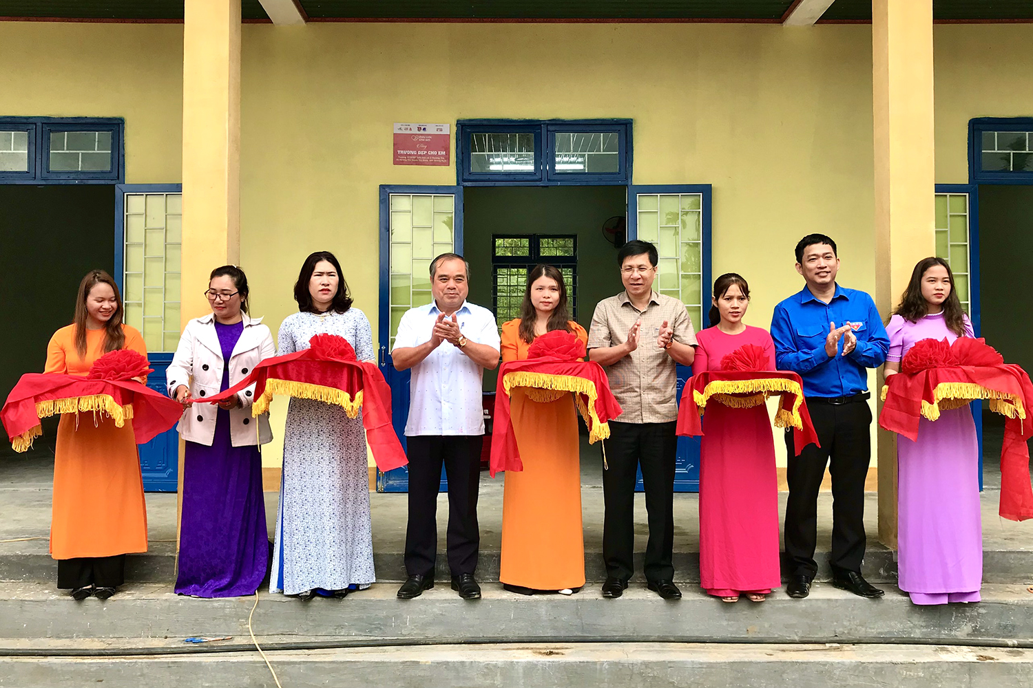 Đại biểu thực hiện nghi thức khánh thành công trình “Trường đẹp cho em”
