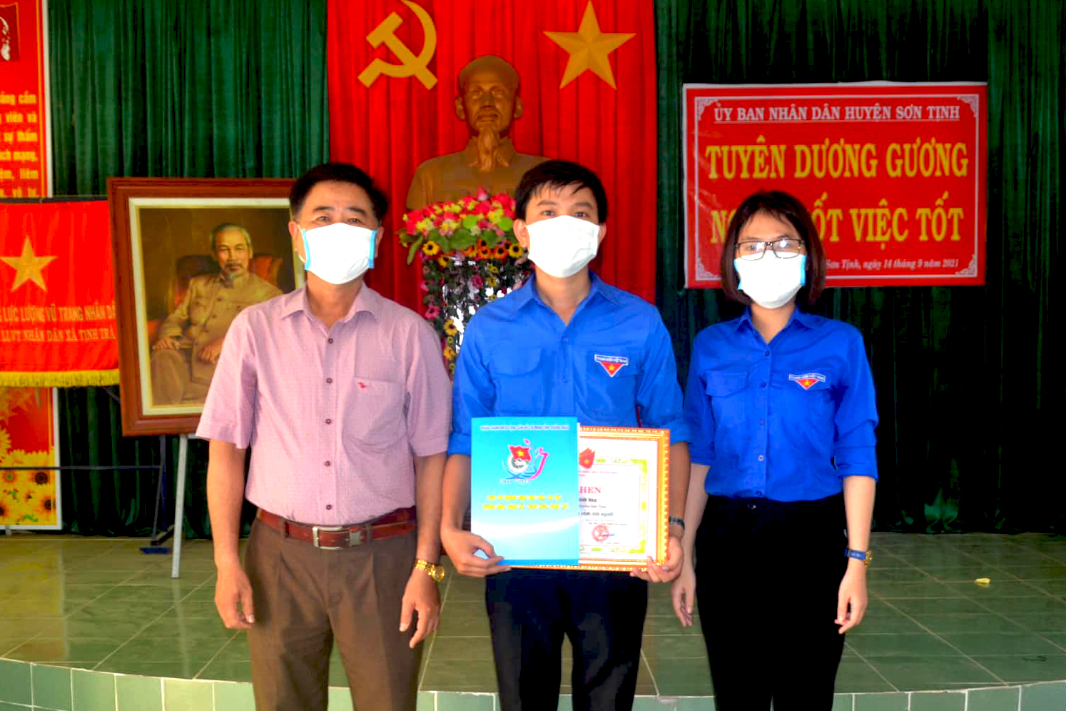 Tại buổi lễ, Chủ tịch UBND huyện Sơn Tịnh cũng đã tặng giấy khen cho 3 cá nhân gồm: Bí thư Đoàn xã Tịnh Trà Lê Khánh Hòa; Trung đội trưởng Trung đội dân quân xã Tịnh Trà Mai Quyết Thắng và anh Huỳnh Tấn Thảo đã có hành động dũng cảm cứu người trong cơn bão số 5.